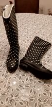 Ridstövlar så gott som nya - Till salu 1 x slitna gummiridstövlar i (blå med vita prickar) i storlek 38 från Felix Bühler. Dessa stövlar är i mycket gott skick och lika bra som nya. Tyvärr kan jag inte använda dem.
