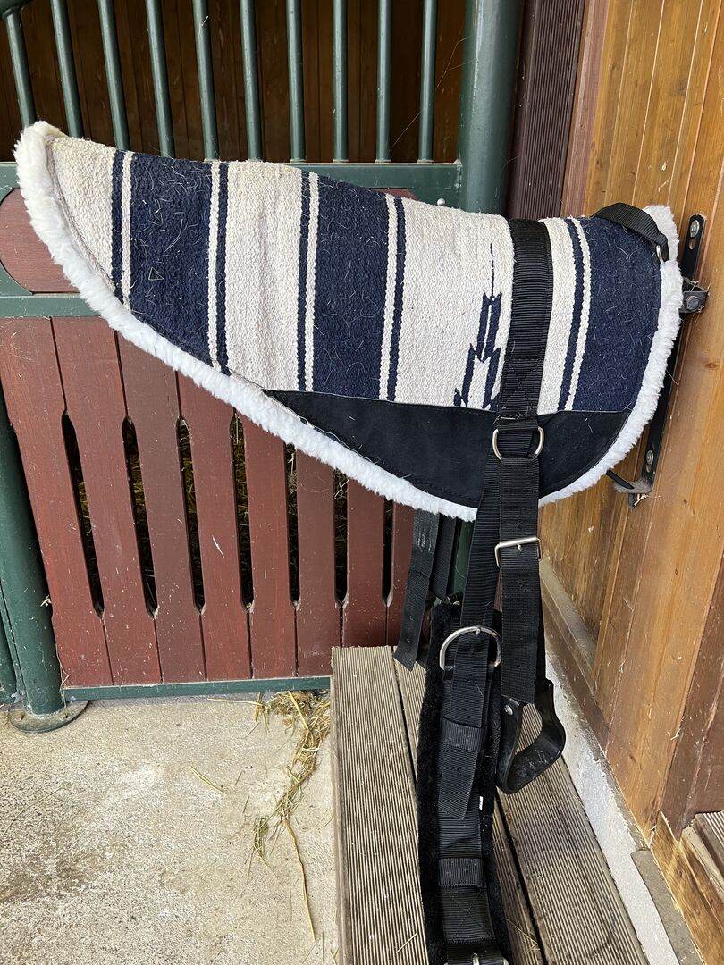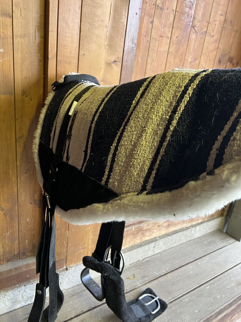 Ridunderlag för westernridning - Jag erbjuder en begagnad västerländsk ridplatta i gott begagnat skick. Jag fick padden i maj 2023 när jag köpte mitt Tinker-sto och har aldrig använt den. Stigbyglar och sadelgjord ingår.