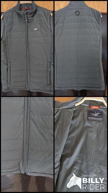 Ridväst Schockenhöhle Sport - Vacker, vadderad ridväst med blixtlåsförsedda fickor, grå, snarare herrmodell, storlek S, oanvänd.