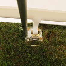 Konstruktionen består av verzinkten Stahlprofilen och en särskilt stark PVC-platta med 900 g/m². Plattan är vattenavvisande, UV-beständig med UV-skydd 50+ och övertygar med hög ljusbeständighet. Med en bredd på 6,10 m, en längd på 12,20 m och en höjd på 3,60 m erbjuder denna Rundbogenhalle mycket användbart utrymme på kompakterad yta. Två stora ingångar med en öppning på 4,30 x 3,20 m möjliggör bekväm in- och utfart samt en god ventilation i innerutrymmet.