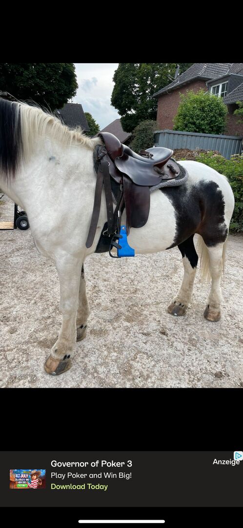 Jag säljer min ROC Reinduro, som jag verkligen tycker om att använda. Jag har själv köpt den begagnad. Sadeln har normala tecken på användning och har alltid skötts om och kontrollerats av Mr Wanek. I början av året konverterades sadeln till det senaste systemet av Mr Wanek, så att sidan till en början var täckt med läder eftersom jag inte köpte en ny pad. Han kan ändra detta när som helst, men det stör mig inte och ser bra ut! Sadeln satt på min Tinker valack och ger en fantastisk känsla, jag vill inte ge bort sadeln, men jag var tvungen att pensionera min häst. Sadeln är därför välkommen att flytta vidare. Ibland användes sadeln också på ett spanskt sto, så sadeln kan justeras i enlighet därmed.