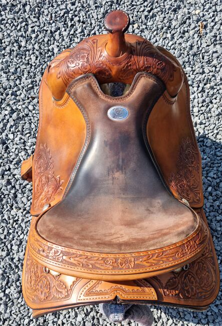 Visar mindre tecken på slitage (viss missfärgning av lädret där man sitter och viss skada på stigbyglarna), men i övrigt är sadeln i mycket gott skick.