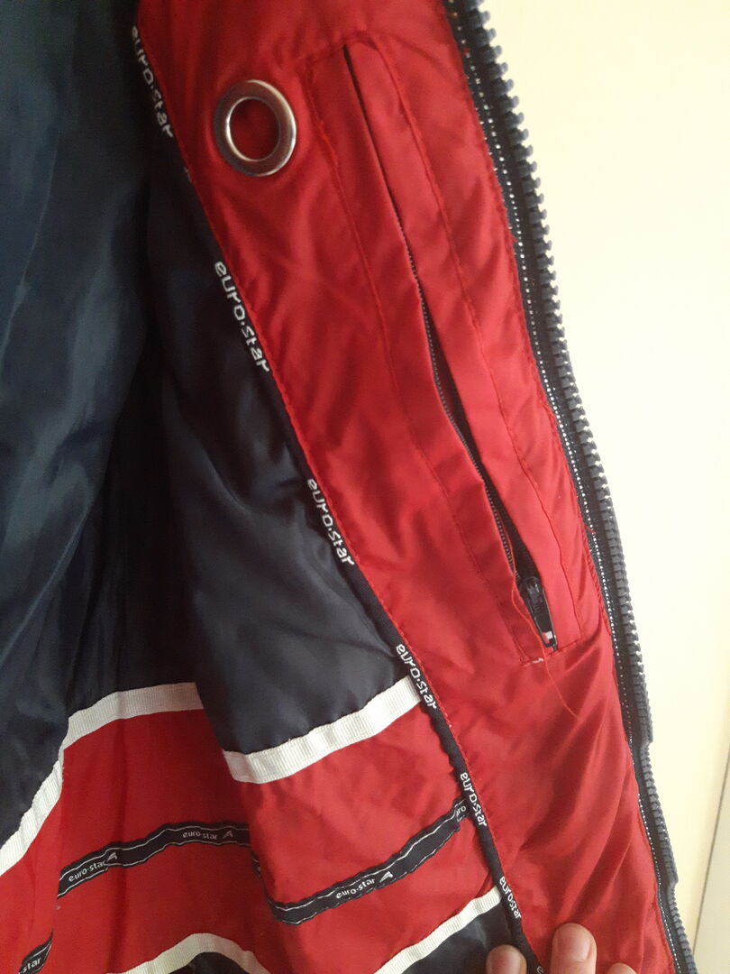 Röd vinterjacka Eurostar - Röd, mycket tjock och varm vinterjacka från euro-star i storlek XS. Jag köpte den själv på eBay Classifieds i mycket gott skick och har inte använt den eftersom den är för liten för mig.