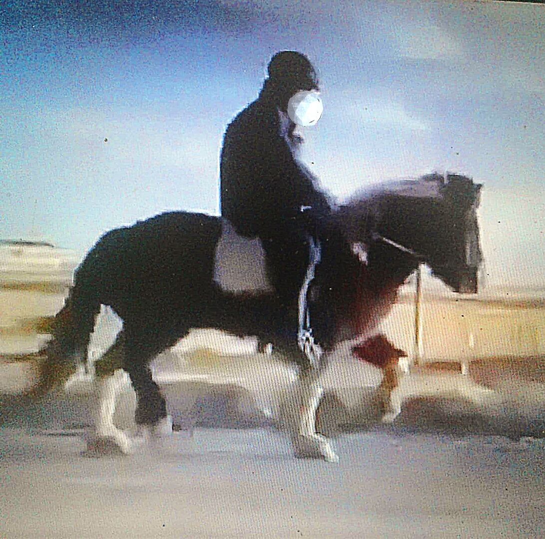Rolig häst för terränglöpning med tölt och go - Rolig häst för terräng med tölt och go Valack från 2021 Färg: svart pinto Utbildningsnivå: väl inriden, 5 gångarter