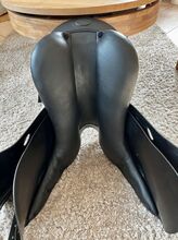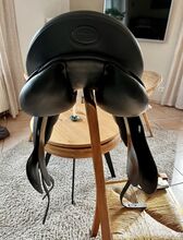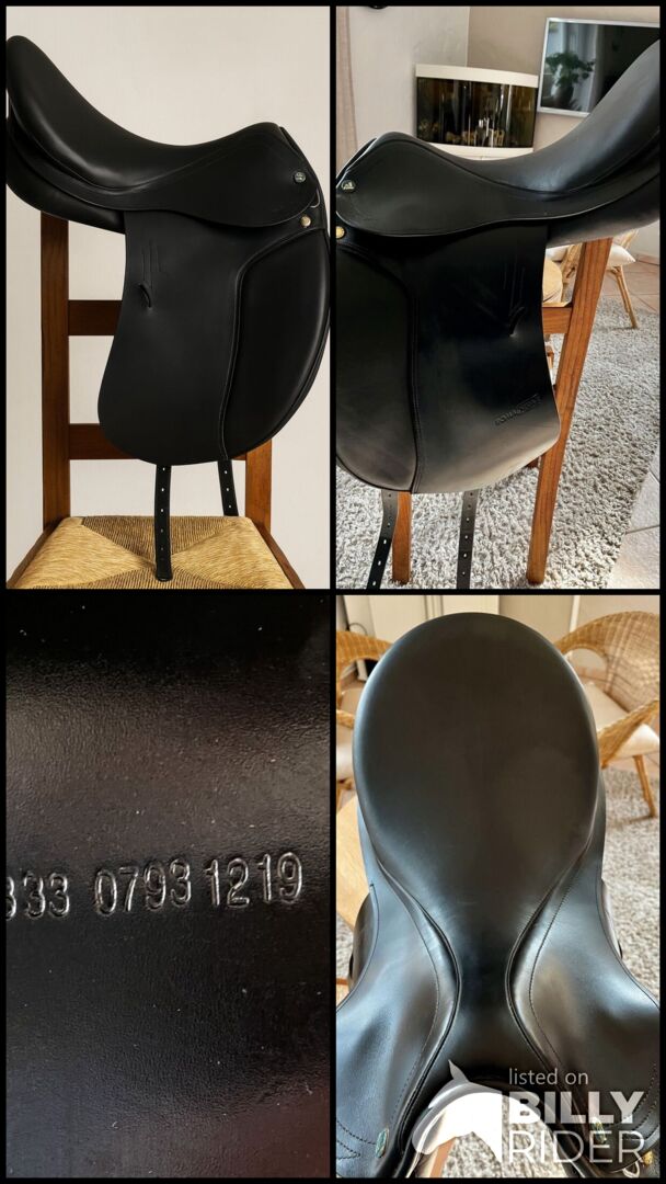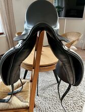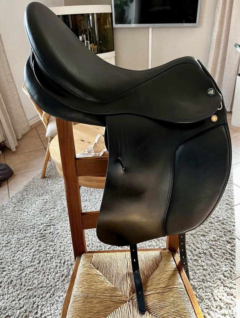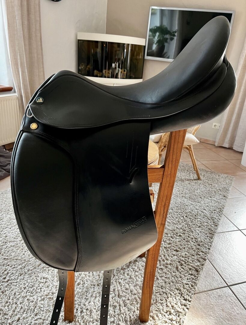 Roma Dressage Roma Prestige dressyrsadel - 18", KW 33 - mycket bra skick - Säljer min Roma Dressage dressyrsadel (tillverkningsår 2019), som vi köpte ny 2020 och bara använt sedan dess. Första ägaren, mycket väl underhållen och lite använd totalt sett. Den har inte varit på hästen under de senaste två åren eftersom den inte passar vår nya häst. Sitsstorlek: 18 tum Valvbredd: 33 (minimalt breddad en gång) Knärullar: avtagbara, fästs med kardborreband. INGEN djup sits. Skick: mycket bra (se foton).
