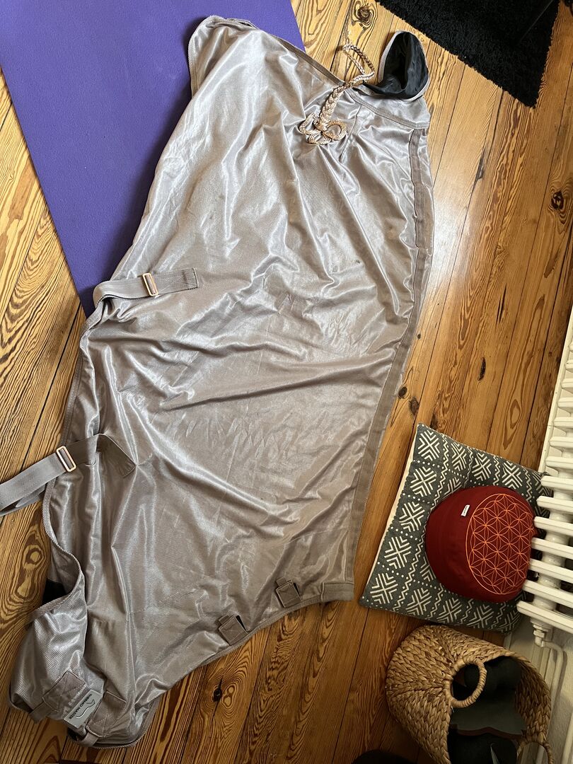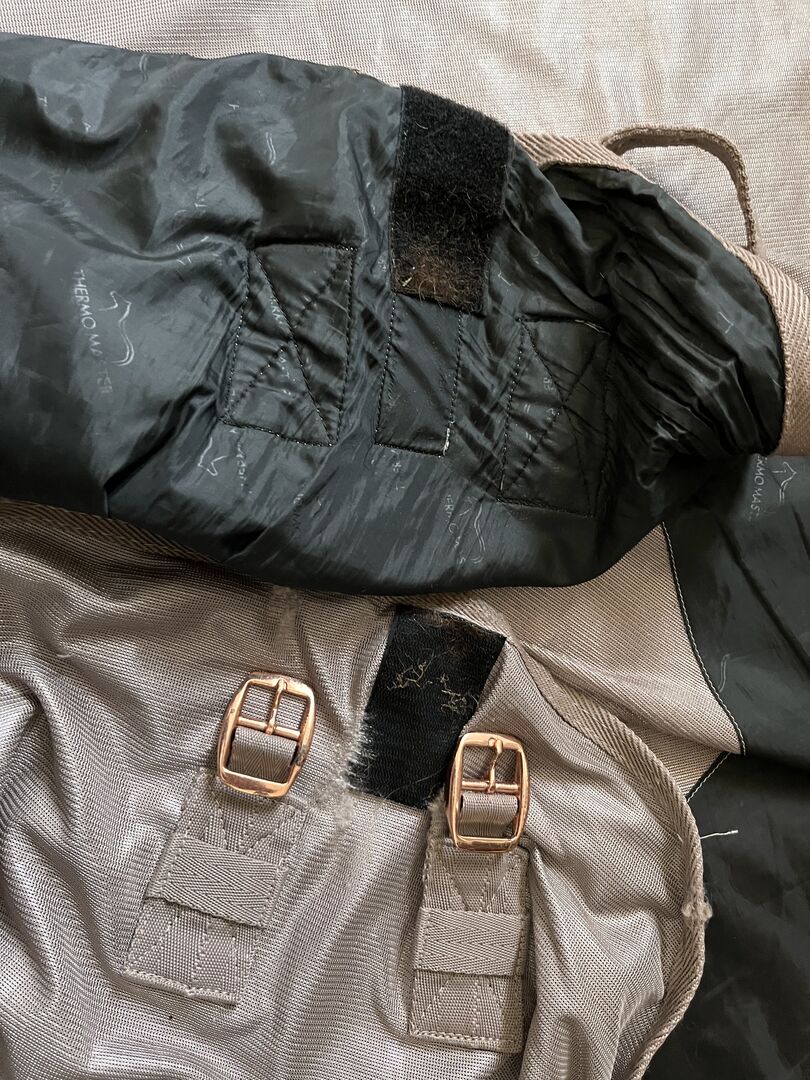 Royal ThermoMaster flugtäcke storlek 145, Krämer - Kunglig flugmatta storlek 145, i gott skick. Köpte den förra året och har knappt haft den på. Det finns fläckar på ena sidan som jag inte fick bort när jag tvättade den (se bilder). Nyligen tvättad.