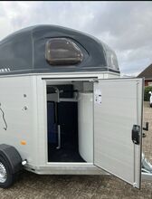 Vår så gott som nya hästsläpvagn erbjuder tillräckligt med utrymme för 2 stora hästar och är fullt utrustad:
