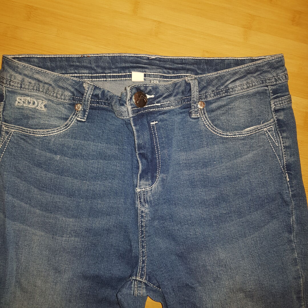 Så gott som ny, jeans och blus - Endast använd 3 gånger ridjeans, 30/30, smal passform, små slitsar vid benslutet, resår, superpassform och bekväm; blus med midja, supersnygga fantastiska detaljer, färg i riktigt fin och starkare än på bilden, storlek L, säljs också individuellt. Jag bar den som en kombination