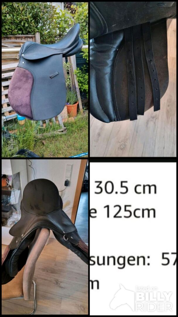 Sadel 17,5 - Hej, jag erbjuder en begagnad sadel. Sadeln användes endast till trähästen. Som du kan se på bild 2 är några hål lite slitna men har hållit hittills. Du kan se mätningarna på bild 4 Ursprungligt pris var 167 €.