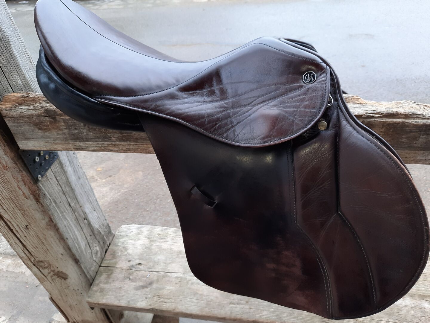 Sadel för hoppning - Jag säljer min älskade Kiefer hoppsadel, i en fantastisk brun färg, eftersom den inte passar min nya häst. Sadeln är lite äldre och har därför de vanliga bruksanmärkningarna, men är fortfarande fullt användbar. Måsarna gjordes om för ungefär 1,5 år sedan och sedan dess har sadeln knappt använts. Måtten kan ses på bilderna. Lädergrimma i 130 cm kan läggas till.