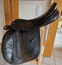 Sadel för hoppning - Hoppsadel med små tecken på slitage, som jag köpte i detta skick för ca 3 år sedan. Annars är det en användbar sadel som jag alltid har tagit hand om. Jag har använt den väldigt lite. Sitsen är inte stämplad, jag uppskattar 16,5, mer för petite ryttare. En lätt sadel som du sitter nära hästen med. Mer för hästar med låg mankhöjd. Jag hade den på min Haflinger på 1,48.