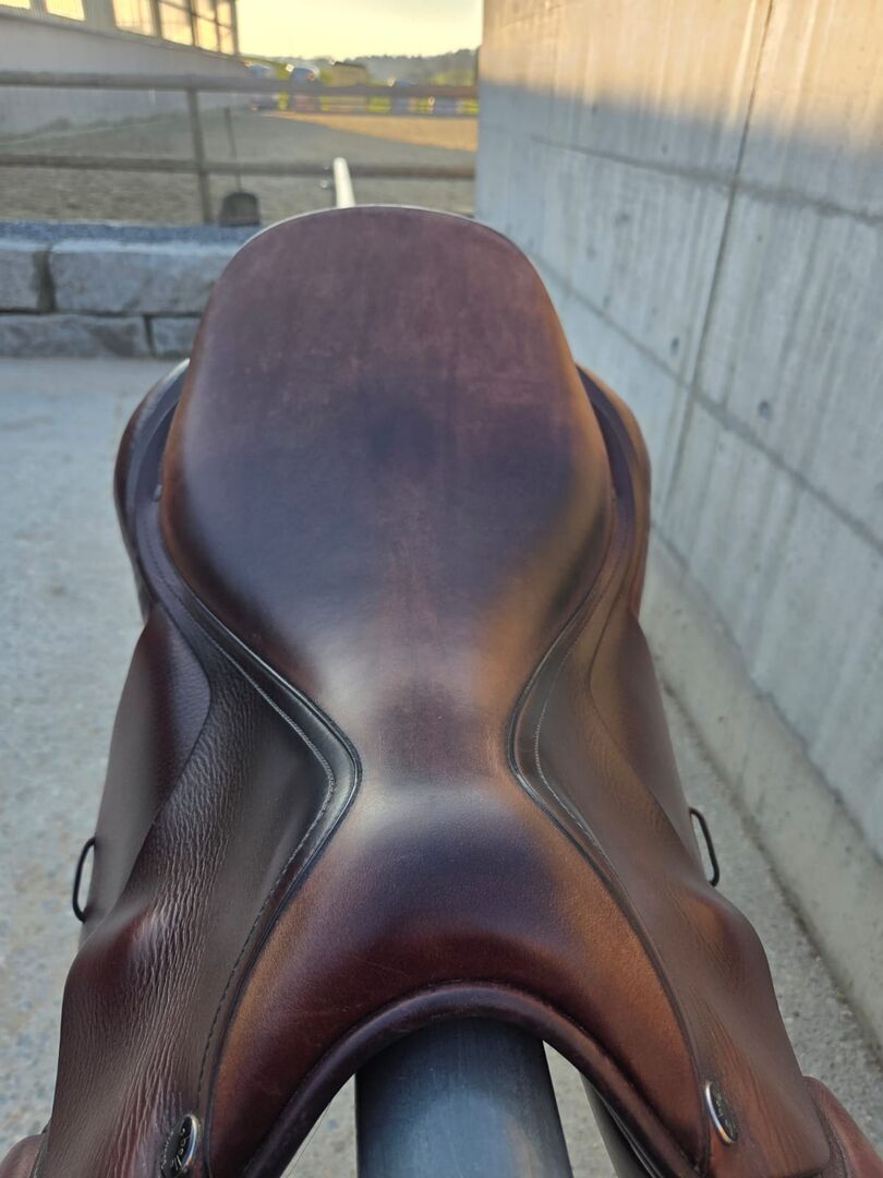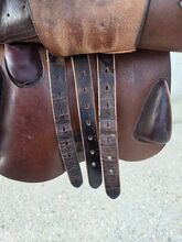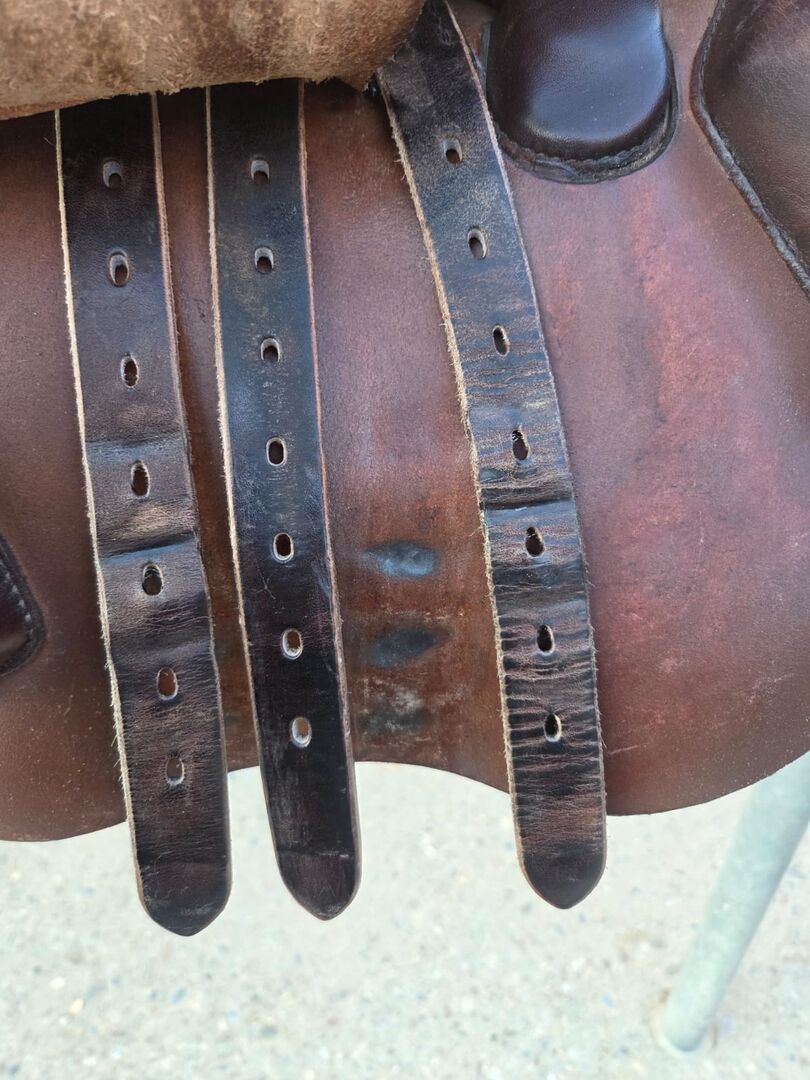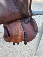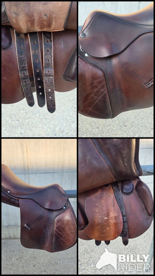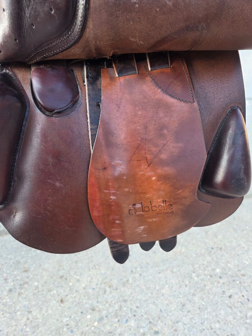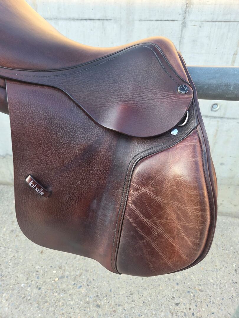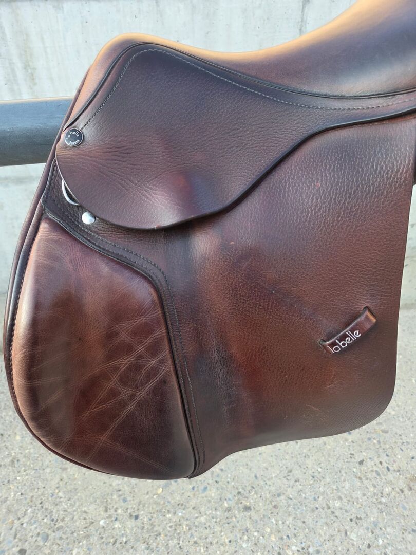Sadel för hoppning - Jag säljer min välskötta LaBelle hoppsadel. Den visar tecken på användning, men har regelbundet rengjorts med läderprodukter. Försäljning på grund av nytt köp. Storlek 17,5 tum Kammarens bredd 10cm Centrum bredd 15cm