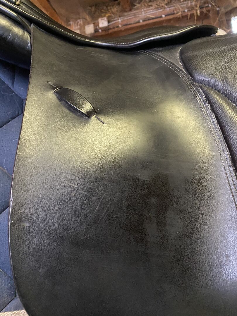Sadel för varumärket Farrington - Hej, jag erbjuder vår Farrington-sadel till salu. Sadeln är en dressyrsadel, men med en liten cantle. Den har 17,5 tum och är svart i färgen. Hittills har den suttit på vår islandsponny (ca 136 cm). Vi säljer den eftersom vi inte längre behöver en andra sadel och den bara hänger i vårt stall. Den är i gott skick, med några få tecken på slitage. Den levereras med stigläder och stigbyglar om det behövs, men dessa är isländska. Om du är intresserad skulle jag vara glad att få en förfrågan från dig med ett priserbjudande! Sadeln kan också ses (nära Osnabrück), både insamling och frakt är möjlig, men frakt är endast försäkrad och köparen måste bära kostnaderna.