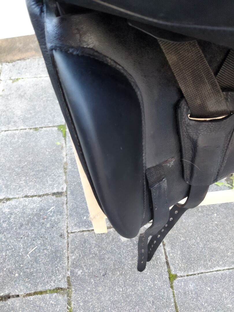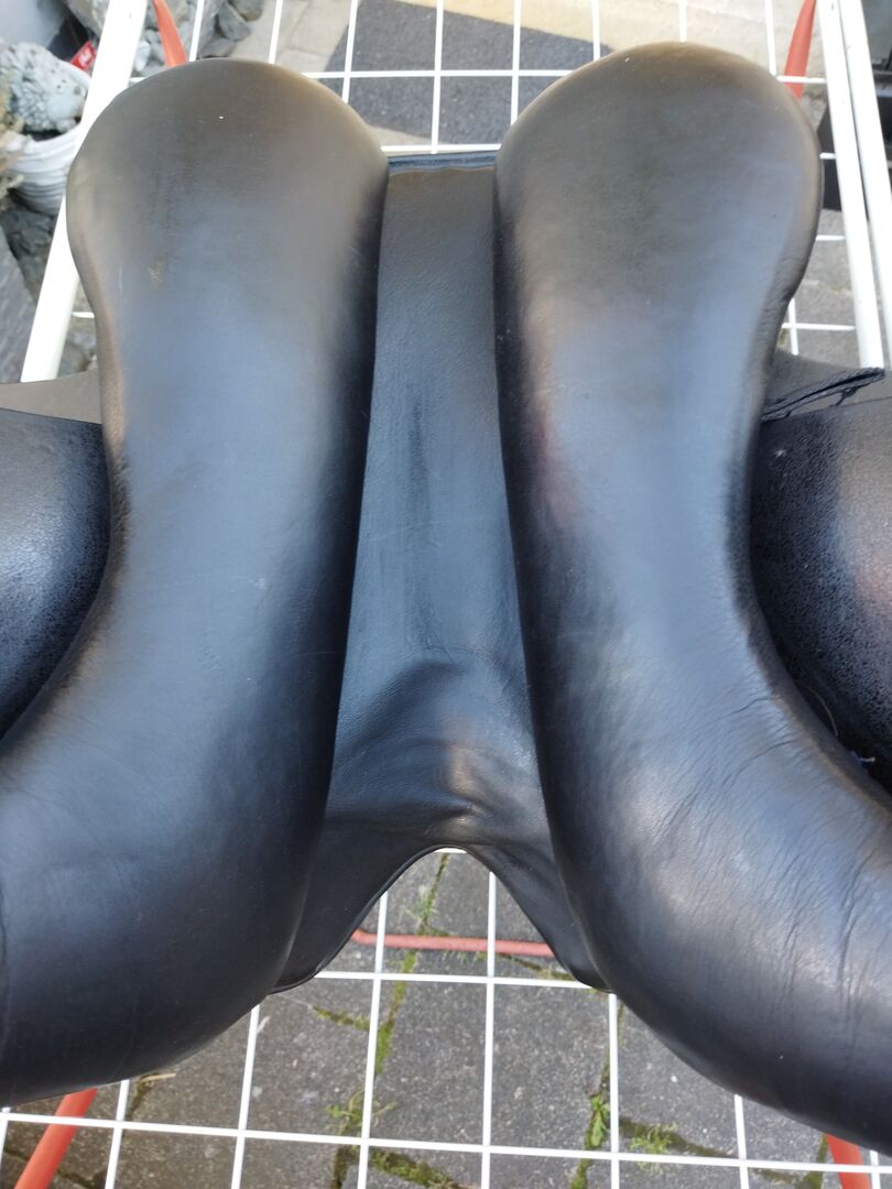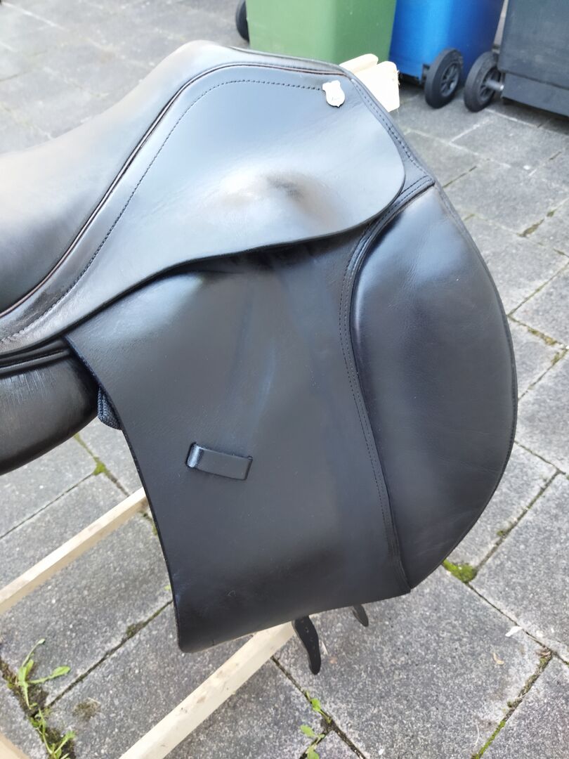 Sadel Massimo Zeitler Dressage II med franska paneler. Kudde - På grund av min hästs död erbjuder jag en begagnad men väl underhållen sadel av Zeitler. Modell: Massimo Dressage II med franska paneler. Original KW 36 (för närvarande ändrad till 38). 18 tums sits. Kammarens bredd kan enkelt justeras 2 storlekar upp och ner från den ursprungliga kammarens bredd av sadelmakaren.