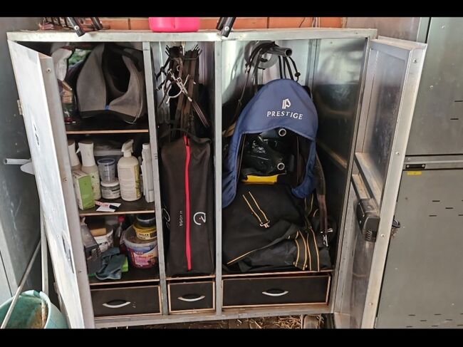 Sadel - Show locker - Det perfekta sadelskåpet för hästtävlingar. Tack vare den lätta konstruktionen och de stora luftfyllda länkhjulen och fasta hjulen är vårt sadelskåp mycket bekvämt att hantera och lätt att lasta.