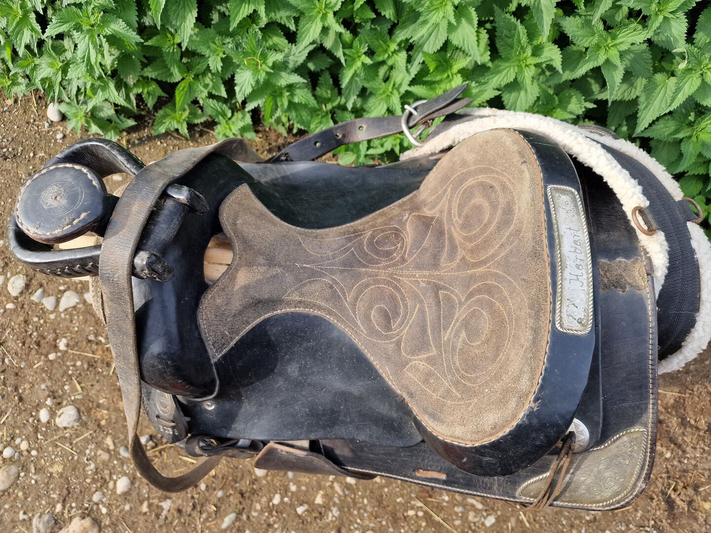 Sadel, western sadel, läder sadel - Säljer diverse häst- och ridutrustning för en liten ponnyridskolas räkning. Intäkterna kommer att gå till en liten ponnyridskola.