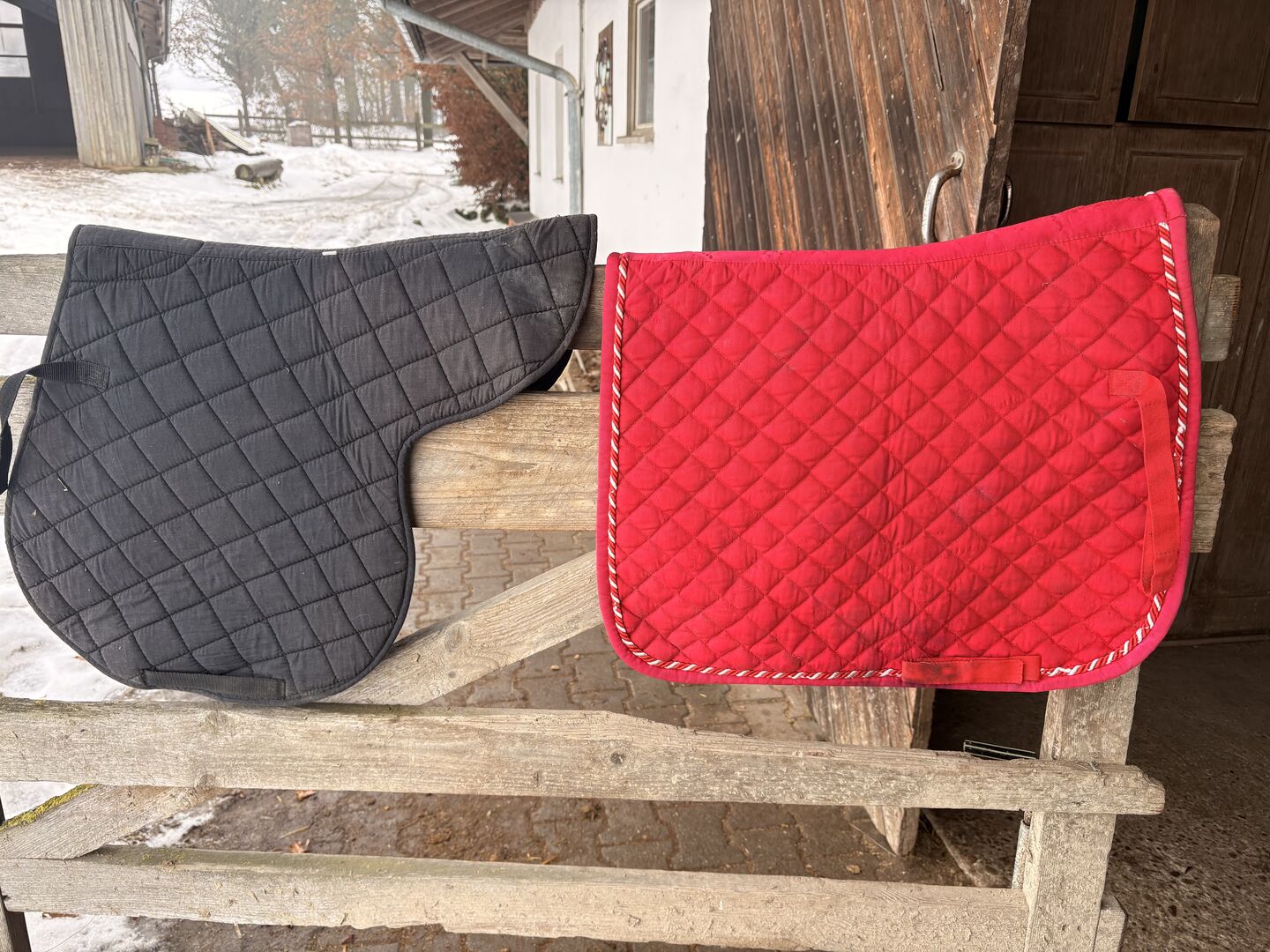 Sadelunderläggen är i gott skick och visar normala tecken på slitage. Perfekta för vardagsbruk i stallet.