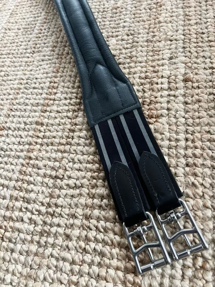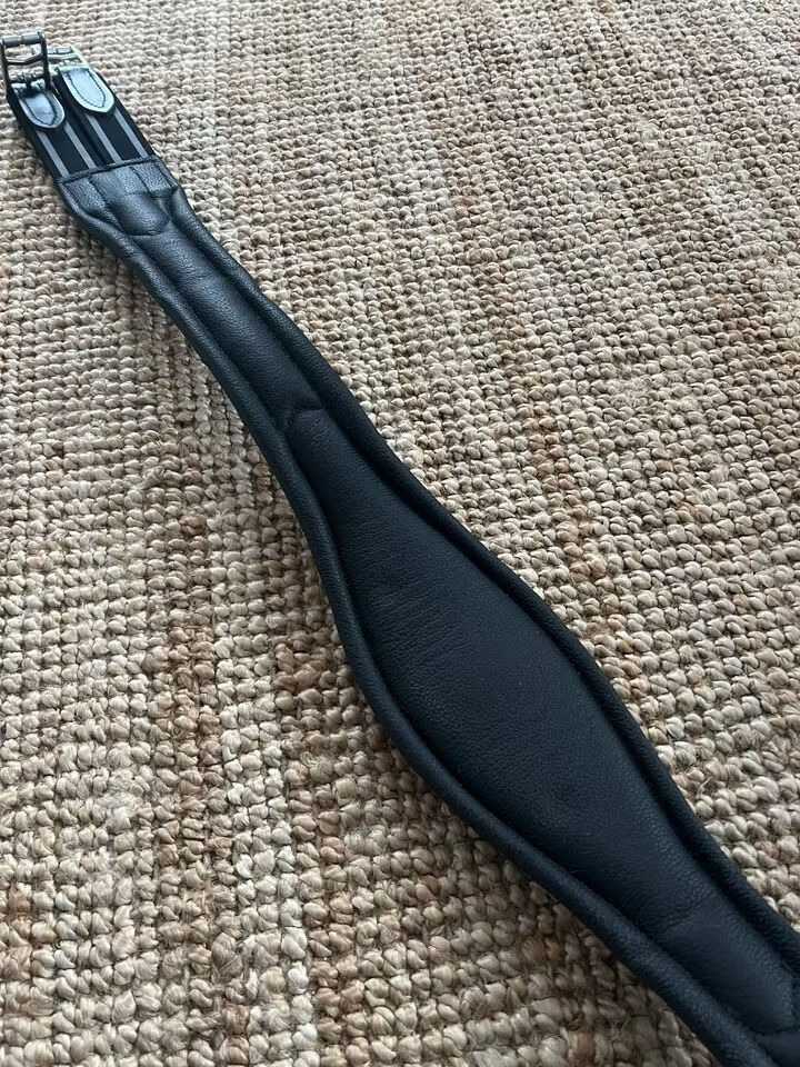 Sadelgjorden är så gott som ny, den har bara använts två gånger då den tyvärr är för kort. Elastisk på båda sidor, mjukt fodrad. Färskt rengjord och väl omhändertagen.
