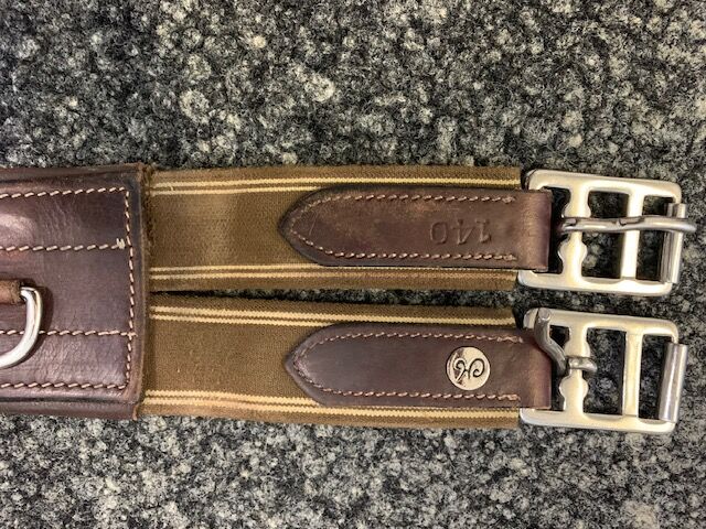 Sadelgjordar - 140 cm, brunt läder, elastiska snören på båda sidor