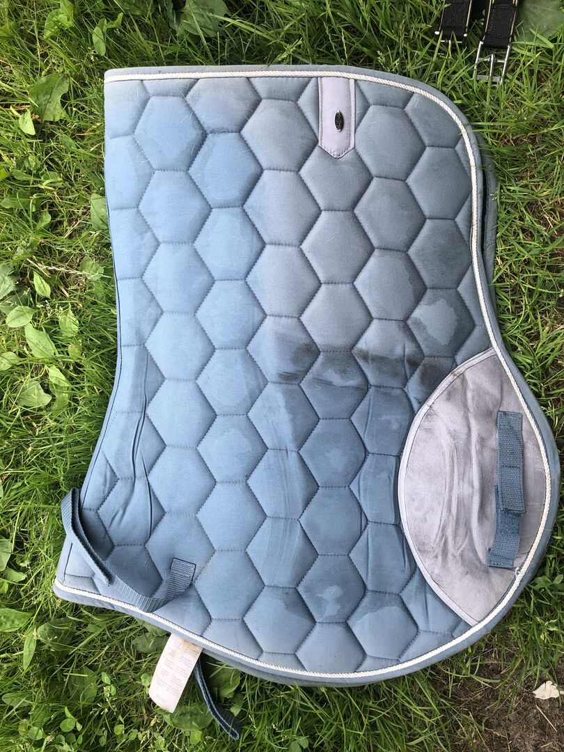 Sadelgjordar och sadeldukar - Sadelkuddar och sadelgjordar kan också köpas individuellt. En ny ljusblå VS sadelunderlag ca. 5x använd nu nytvättad på fotot fortfarande otvättad👍