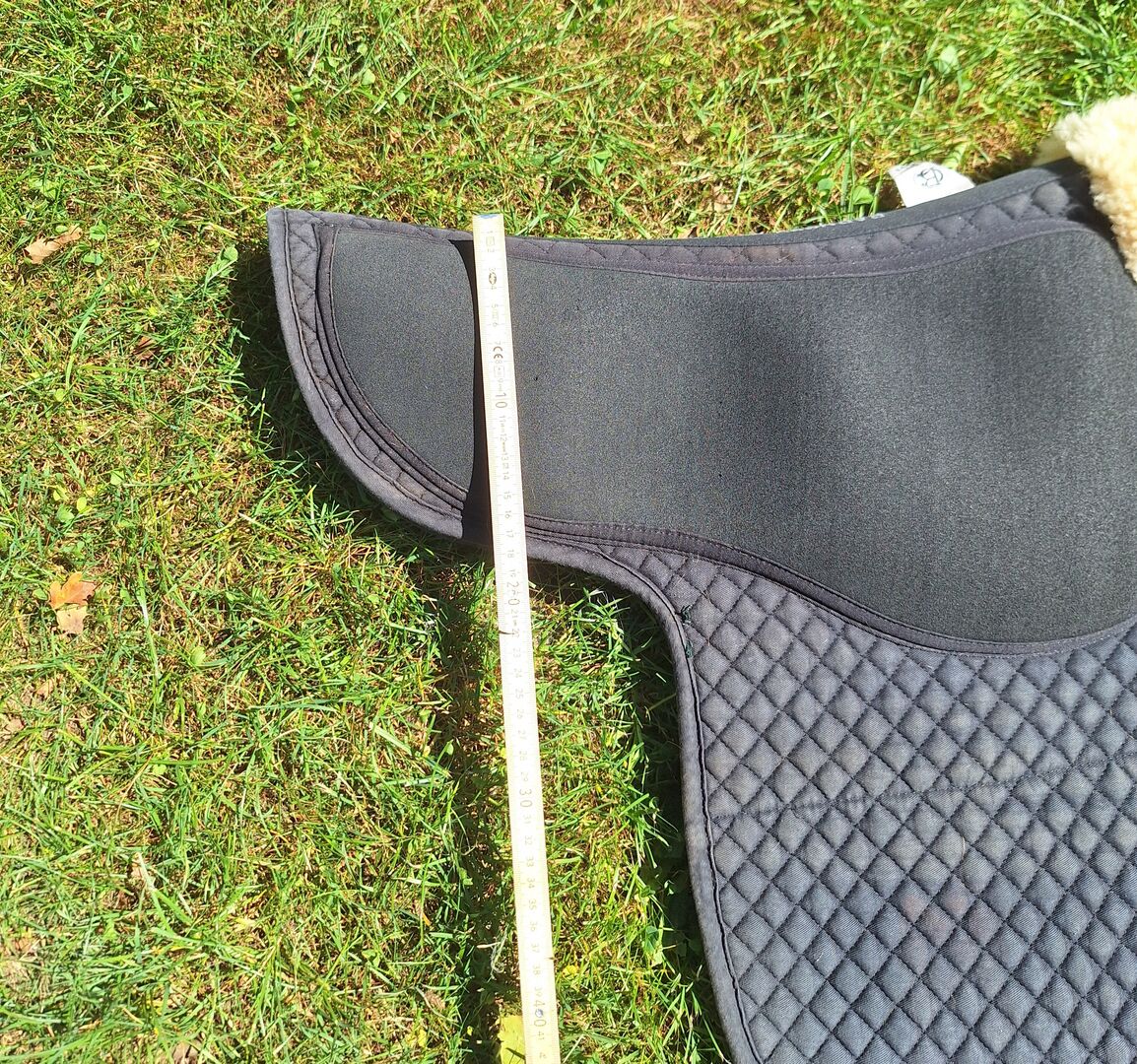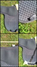 Sadelöverdrag DR, svampgummi, halkskydd, halkskydd, Grip Pad, N - Jag erbjuder ett välanvänt dressyrsadelöverdrag från Barnsby. Grip Pad kännetecknas av ett stötdämpande lager av neopren/mossgummi på ovansidan och ett halkfritt självhäftande galler på undersidan. På så sätt hålls allt där det ska vara. Anatomiskt skuren, utskärning i lammskinn vid manken Sadelgjordshållarna och sadelgjordsbanden är försedda med kardborreband. Det finns ett hål i sadelgjordslappen, de nedre kanterna har lagats. Se bilder för ytterligare skick och mått.