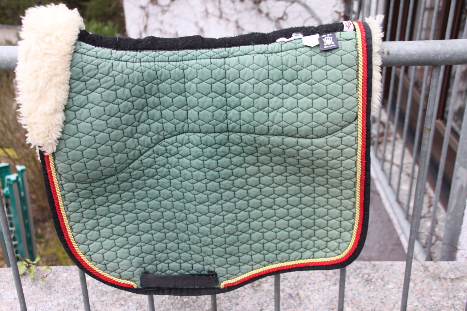 Sadelpåse i lammskinn från Mattes Dr - vacker sadelunderlägg som jag nyligen köpte begagnad, men som tyvärr är alldeles för kort för min speciella sadel. Pälsen är fluffig och intakt