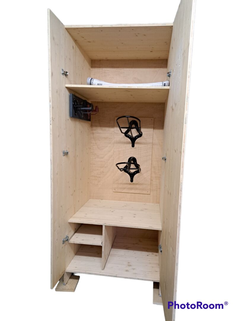 Sadelskåp - Hej, eftersom min flickvän inte kan flytta garderoben med mig erbjuder jag dig den nybyggda garderoben. H: 2,00 m B: 0,80 m D: 0,70 m. Massivt trä med tre lager. Utökningsbar hållare för bryggan. Eftersom materialpriset var 480 euro ber jag om rättvisa bud. Tack. Plats: 88... Men det skulle också vara möjligt att ta det till 89... möjliga