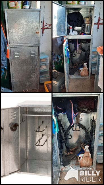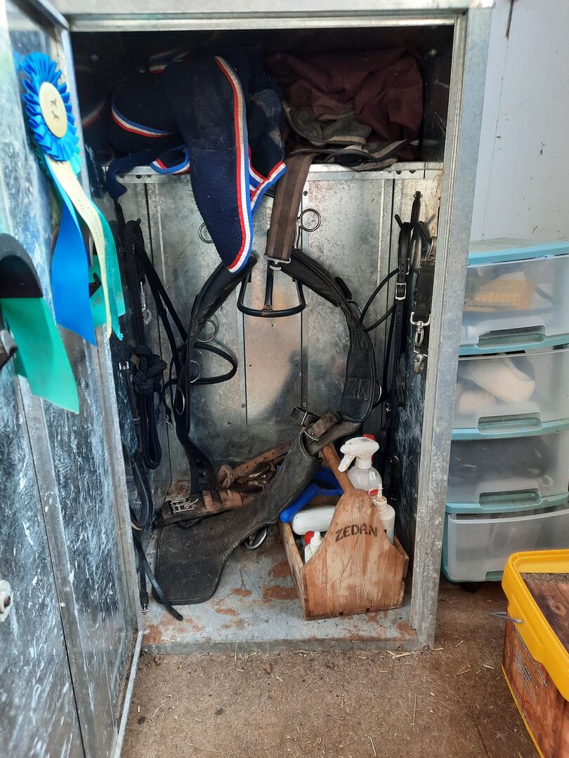 Sadelskåp - Säljer många år använt sadelskåp med överskåp. Endast en sadelhållare men en skördehållare är monterad på utsidan.