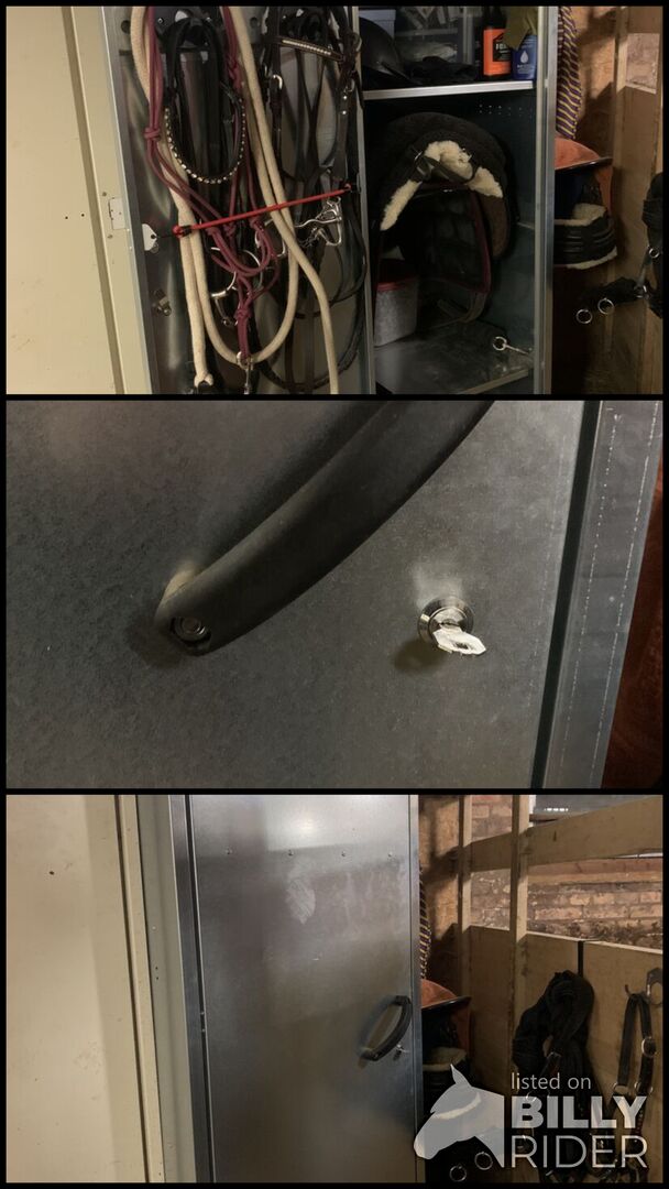 Sadelskåp - Säljer mitt nästan nya sadelskåp som mäter 60x60x190 cm. Det har bara använts i några månader. Skåpet har 4 hyllor, som också kan halveras. Så det finns olika sätt att organisera skåpet. Det har också en sadelhållare (höjdjusterbar) och två tränshållare.