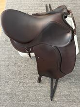 Eftersom sadeln har ett träd av läder har den ingen bukplatta, anpassar sig till hästens förändringar och är inte "hängig".