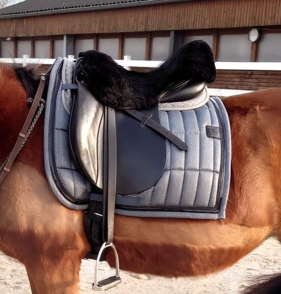 Sadelunderlägg, Harry's Horse, så gott som nya - Sadelunderlägg av äkta lammskinn i svart från märket Harry's Horse, storlek M.