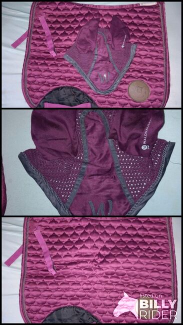 Sadelunderlägg & matchande flugöron bär/fuchsia/ljus bordeaux - Waldhausen dressyrschabrake i färgen cranberry med matchande flugöron i WB/Full. Färgen på flugöronen matchar den mörkare sladden på schabraket. Jag köpte setet tillsammans här i radannonserna för €40 - men har bara använt det själv 1-2 gånger. Hämtning i RE-Nord eller frakt mot betalning möjligt. Privat försäljning, därför ingen garanti, garanti eller retur.