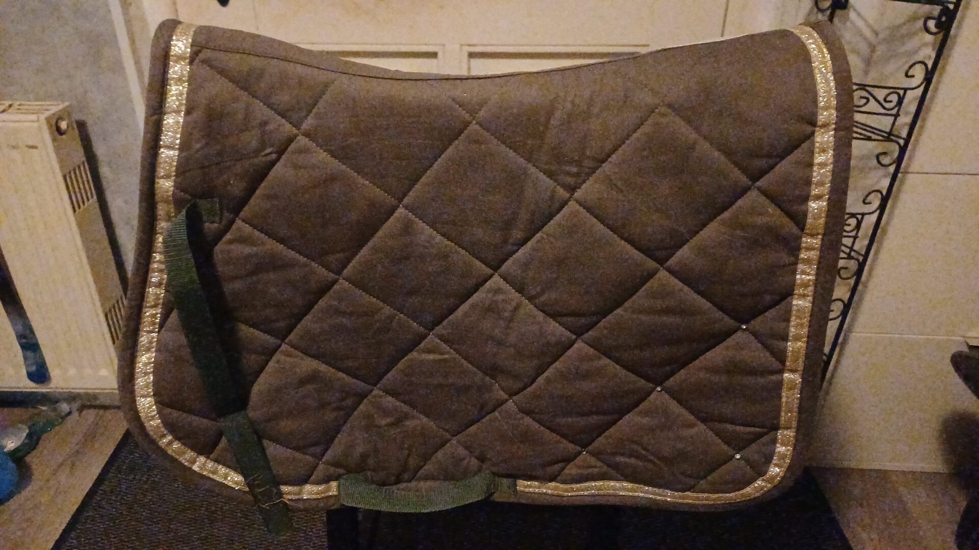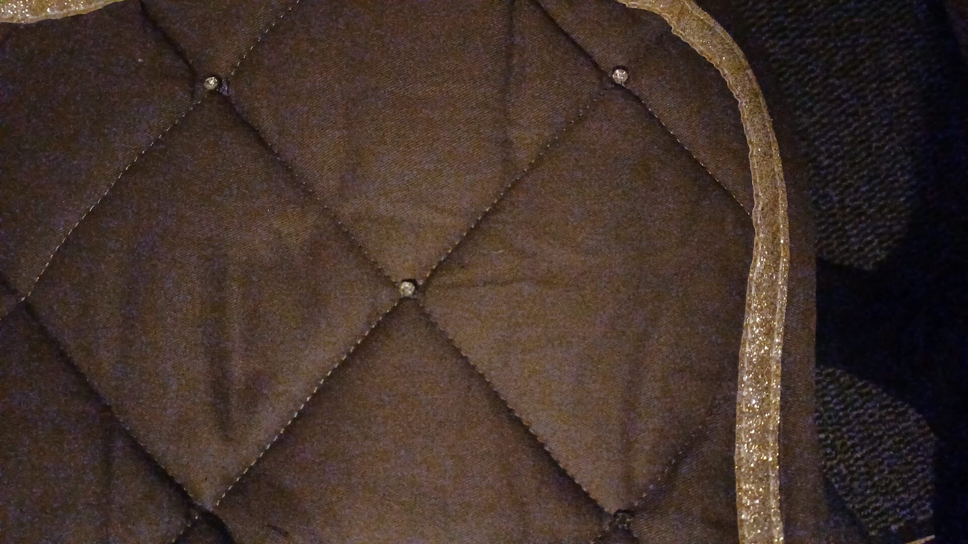 Sadelunderlägg med glittrande stenar - Jag säljer min sadelgjord i gott skick. Den har glittrande stenar i det bakre hörnet. Storlek: Ponny Schabraket har inte använts ofta och är nytvättat. Frakt kan medföra extra kostnader.