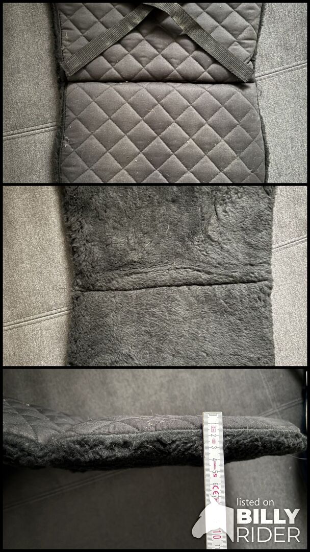 Sadelunderlägg med päls, upphöjd baktill - Sadelunderlägg, överdel i tyg, underdel i pälsimitation upphöjd baktill svart med öglor superskick, mycket sällan använt