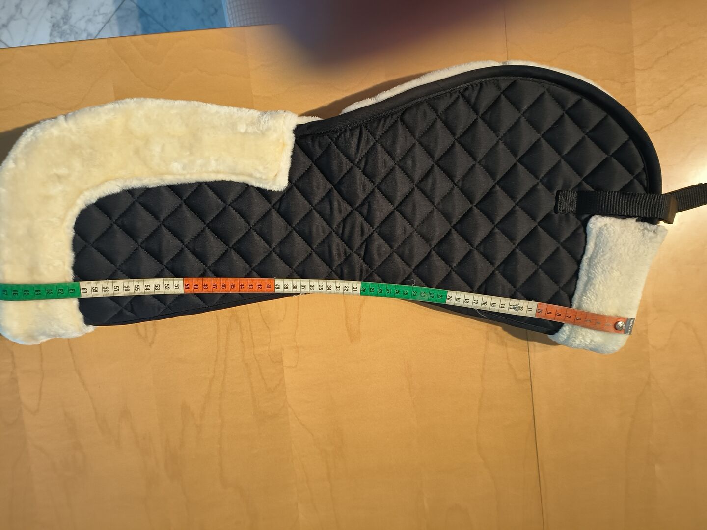 Sadelunderlägg med vävd päls från Marenco, ny-obrukad - Till salu till ett mycket förmånligt pris på grund av brist på användning och utrymme. Nya - aldrig använda. Sadelunderlag: 54 cm, från början av pälsen till slutet av pälsen: 69 cm Storlek: Islandsponny, liten häst, Welsh ponny och ponny (NP: 34.-)