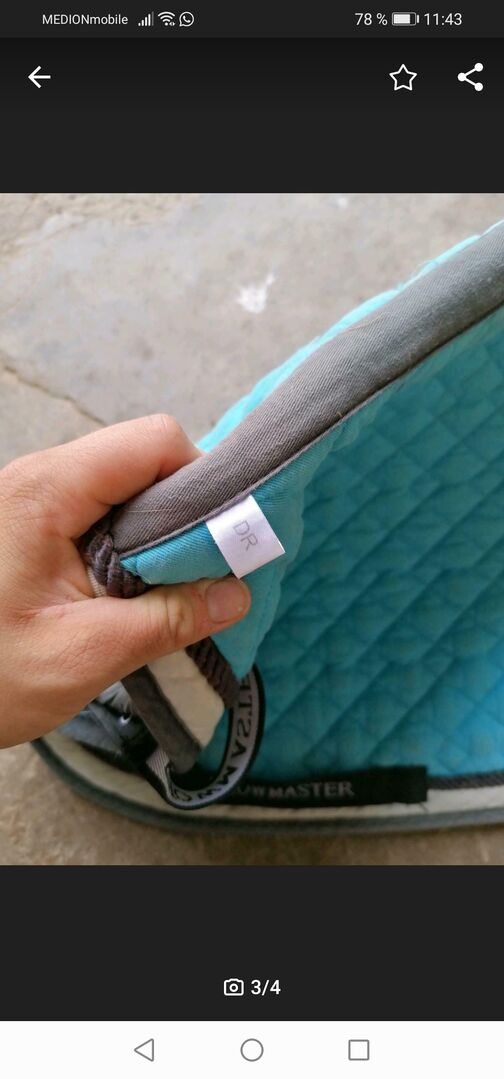 Sadelunderlag - Blå sadelunderlag av märket Showmaster till salu Har aldrig haft den på hästen (fick den i present). Fortfarande i toppskick med små tecken på slitage från sadeln.