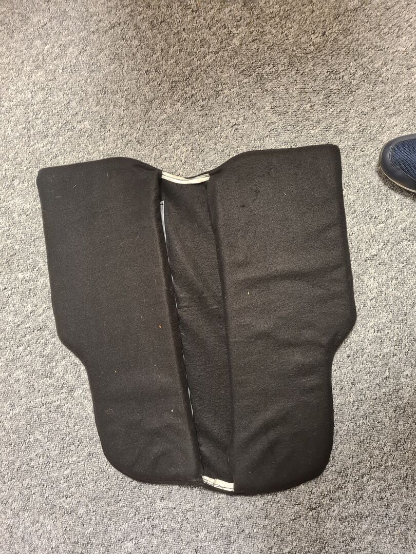 Sadelunderlag av minnesskum - Jag säljer en korrigeringskudde av minnesskum. För att få frihet i vristen var jag tvungen att dela dynan på mitten och sy ihop fleeceöverdraget själv.