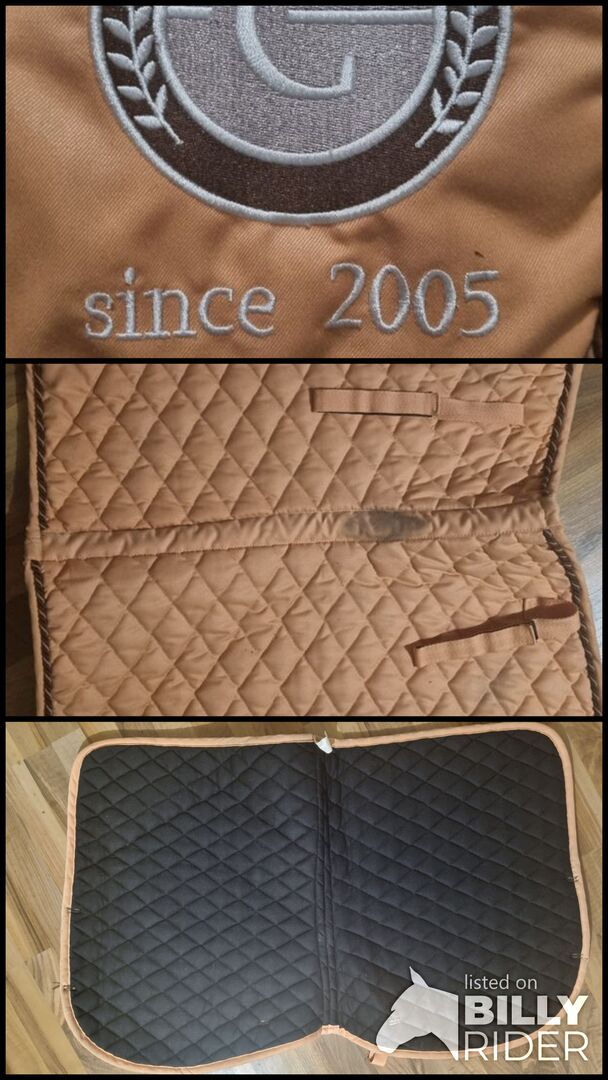 Sadelunderlag Begagnat Varmblod - Välskött och i färgen ockra... Dressyr sadelunderlag till salu. Det har använts mycket och visar tecken på slitage ....se bilder .....