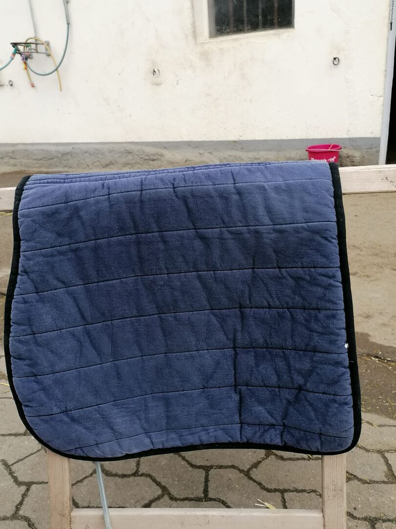 Sadelunderlag Blå - Jag säljer min blå sadelunderlag. Den är lite tjockare (perfekt för vintern eller som lungaunderlag) och det är mycket lätt att ta bort hår. Den har lätta tecken på användning.