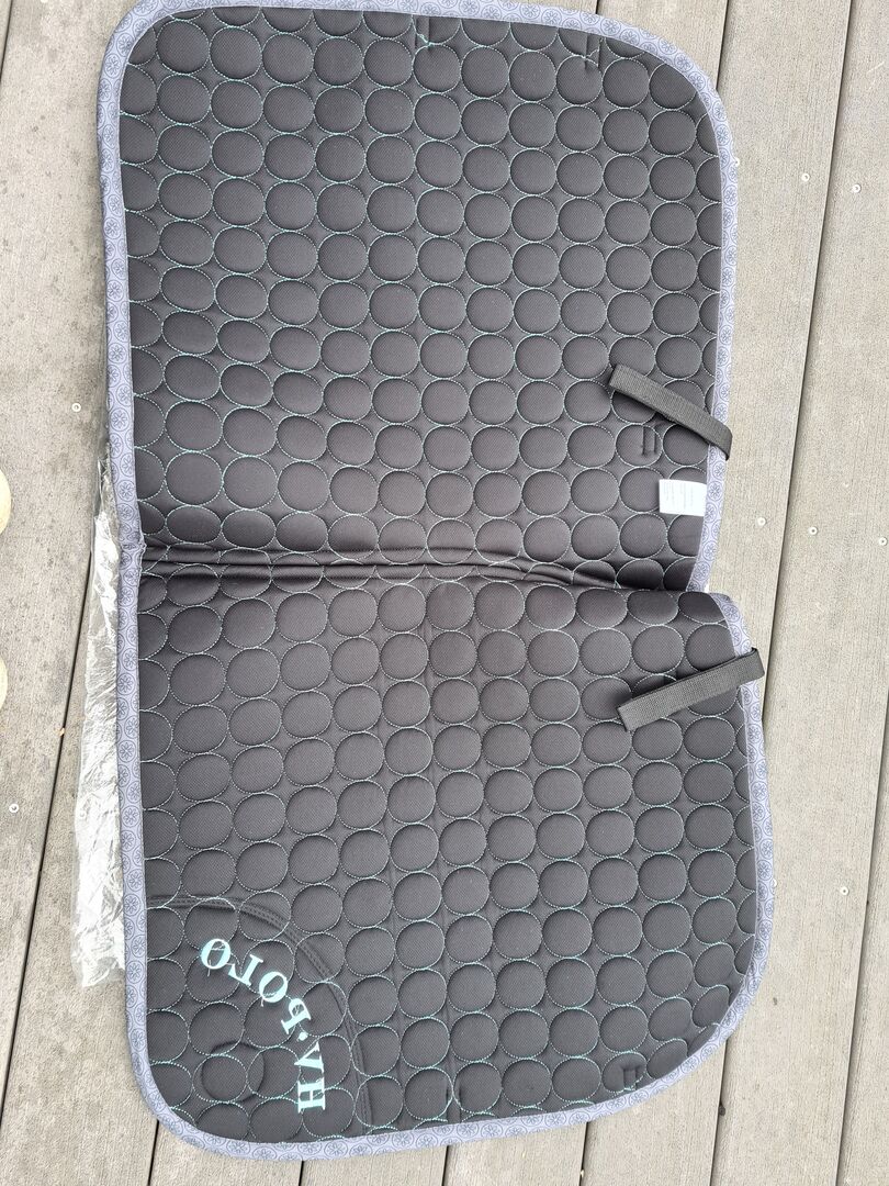 Sadelunderlag DR Full !.New! - Sadelunderlaget är helt nytt. Har aldrig sett ett stall/häst. Warmblood-dressyr. Färgen är ljus turkosgrön. Övermaterialet är av bomull och undersidan av fuktabsorberande luftnät.