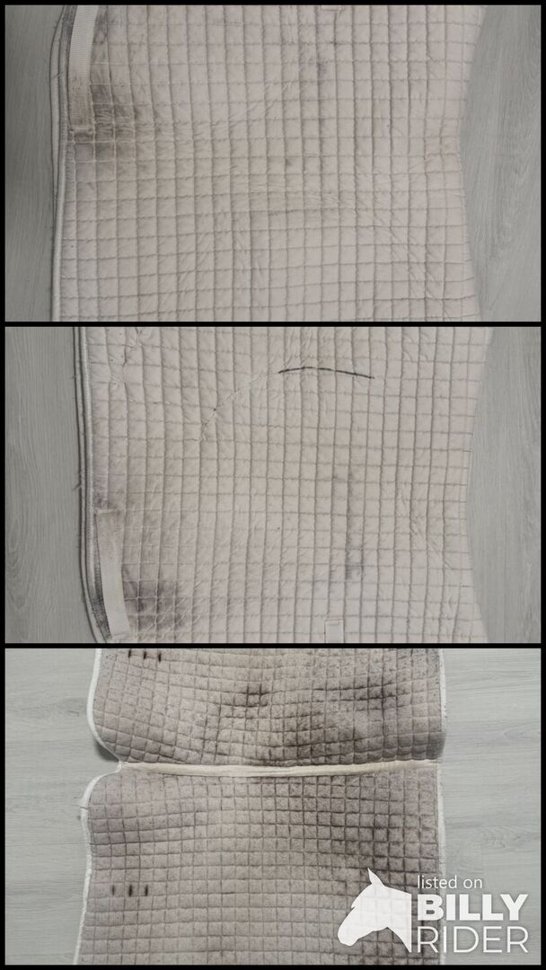 Sadelunderlag dressyr - Sadelunderlägg för dressyr. Vit med spår av användning från sadeln. Perfekt för monoflikar eftersom strängarna för sadelklaffen har skurits av. Men begränsar inte användningen. Privat försäljning därför ingen garanti eller retur. Frakt möjligt till kostnad.