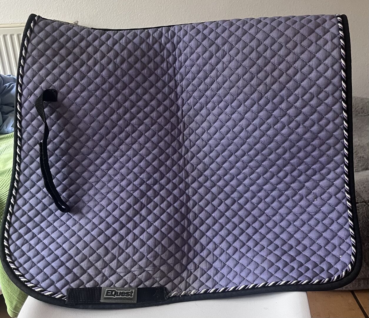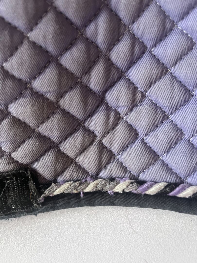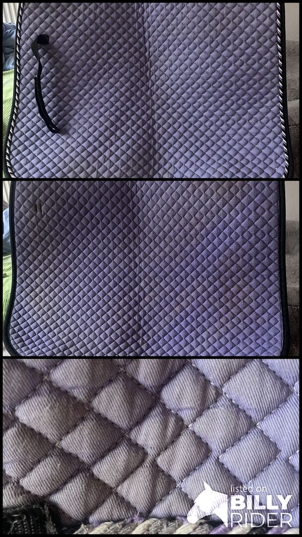 Sadelunderlag för dressyr - Equest dressyrschabrake i en vacker lila färg. Nytvättad men det finns fortfarande hår kvar. Lätta tecken på slitage.