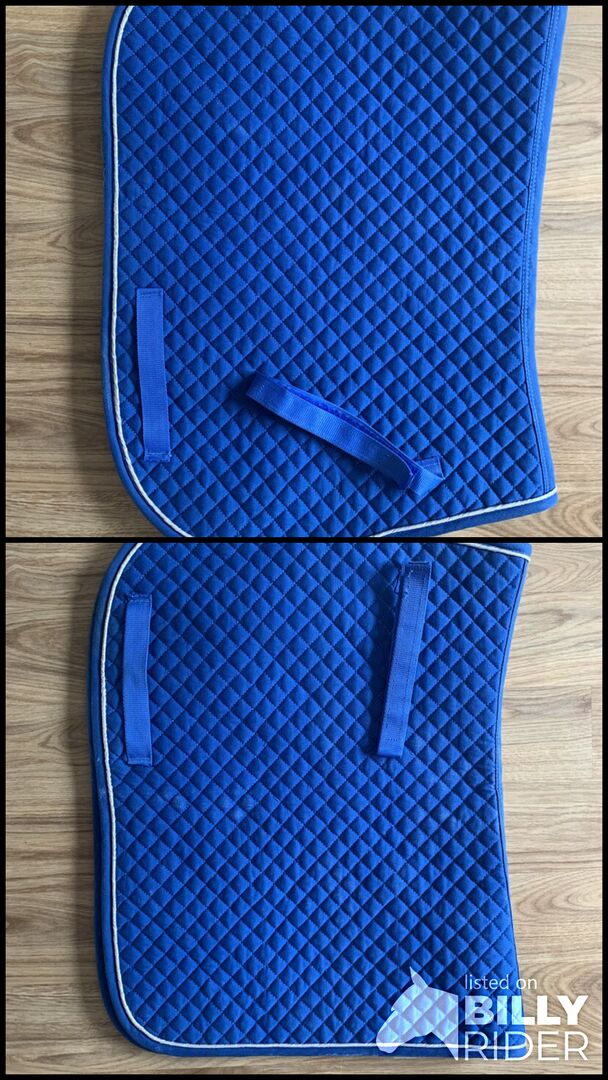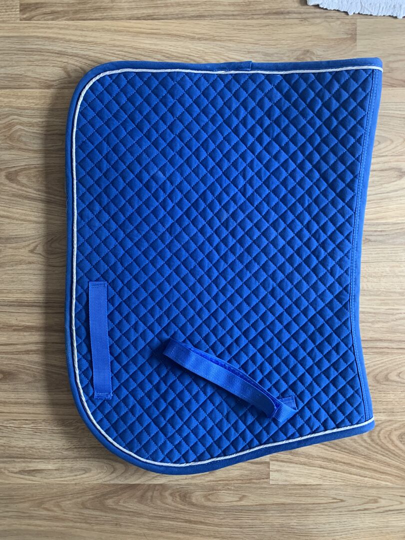 Sadelunderlag för hoppning Pony blå - Blå sadelunderlag med silverfärgade ränder. Har bara använts 2 gånger, har legat runt ett tag.
