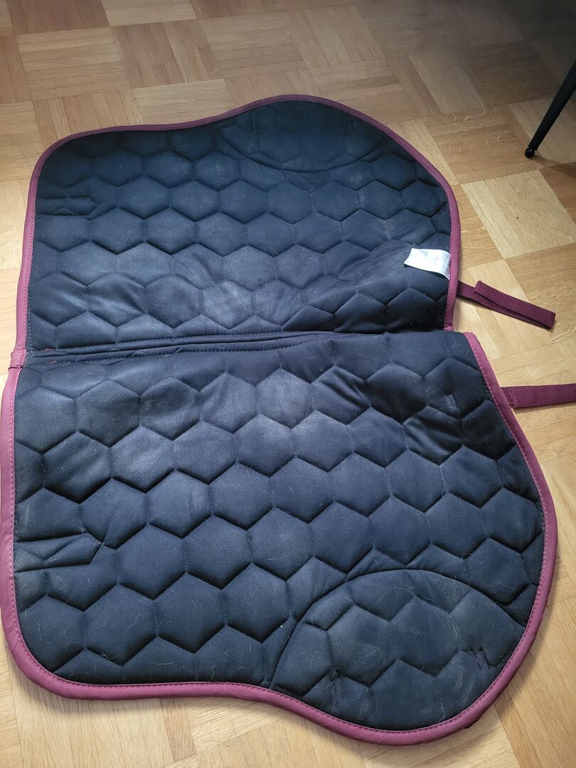Sadelunderlag från Felix Bühler - Schabraket har inte varit på hästen så mycket och är nytvättat. Tyvärr har en mus ätit upp ett hål (se sista bilden), men det har sytts ihop och ligger under sadeln.