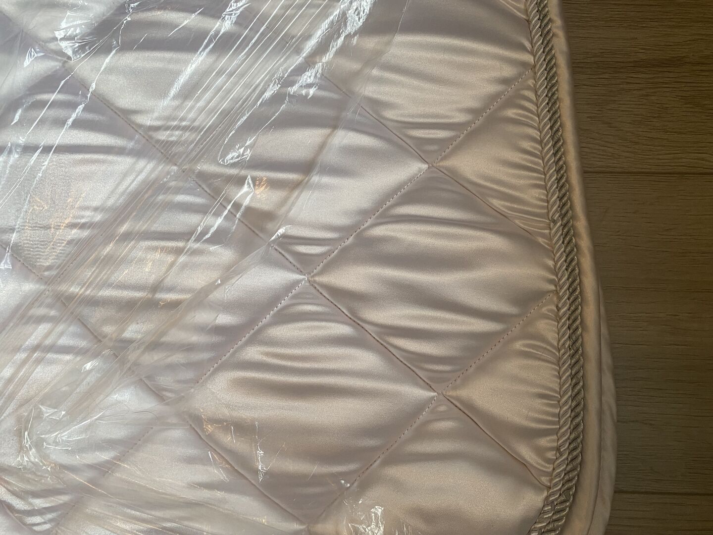 Sadelunderlag VS - Till salu är ett nästan oanvänt schabrak i färgen vit (skimrande).