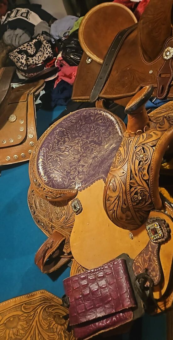 6 almost new saddles and some under padding would yall wanna maybe buy them for a cheap rate. they been used maybe 3 or 4 times at most. brands are silver royal hilason box t I believe . I got them in a storage unit and don't own horses