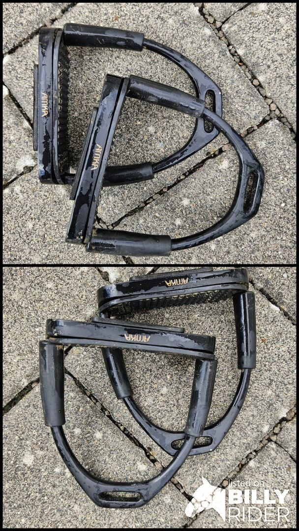 Säkerhetsbyglar - Endast kortvarigt använda säkerhetsstigbyglar med led. Stigbyglarna är från märket Amka, NP ca. 50€. Mycket bra skick, knappt några tecken på användning.