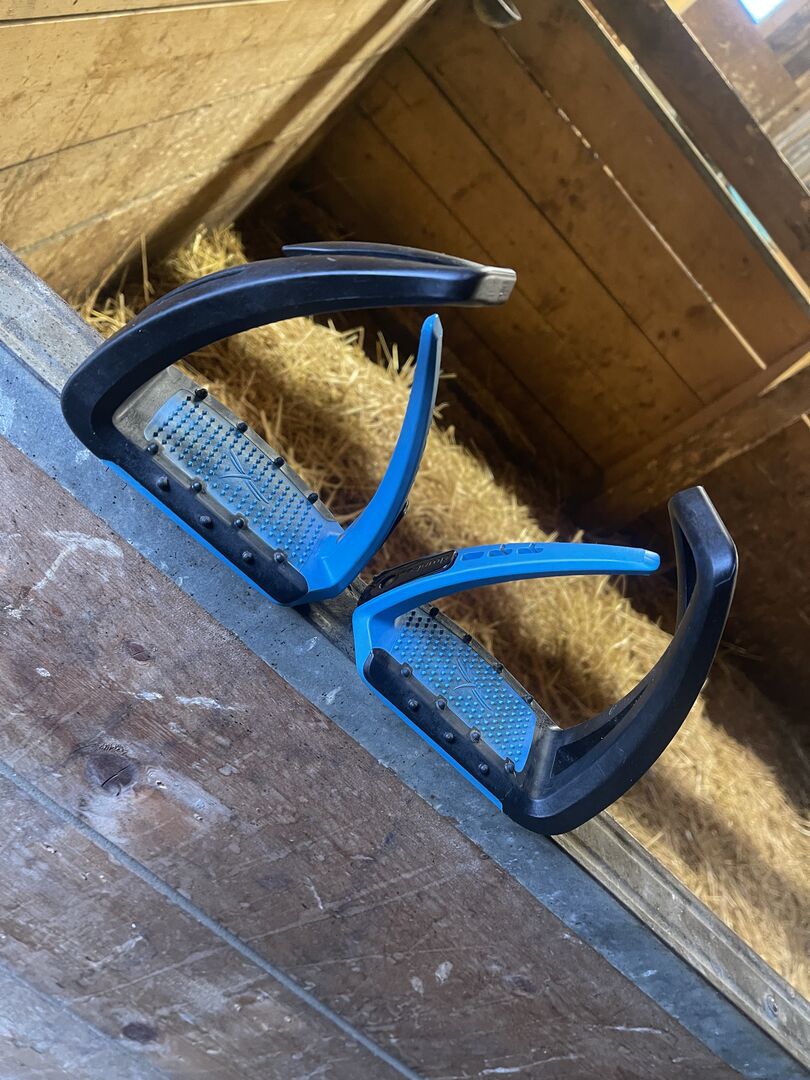 Säkerhetsstång för fritt hopp - Säljer dessa blå/svarta stigbyglar ,- 100€