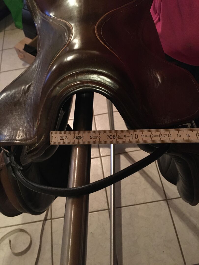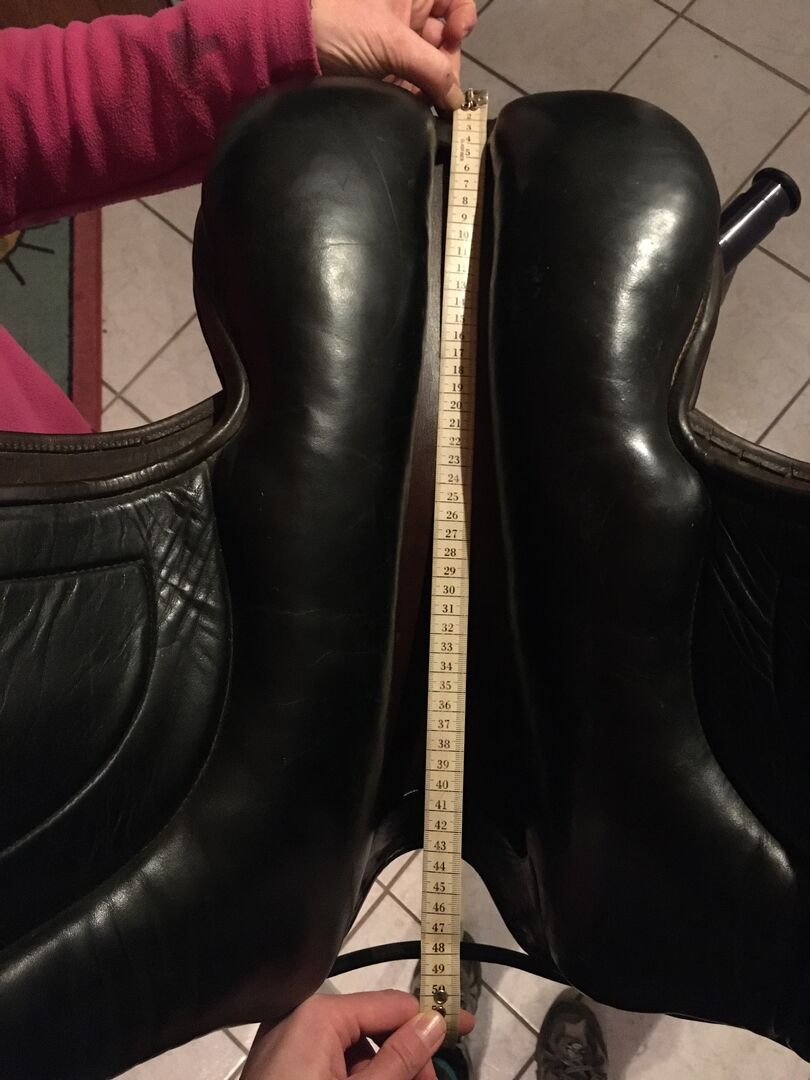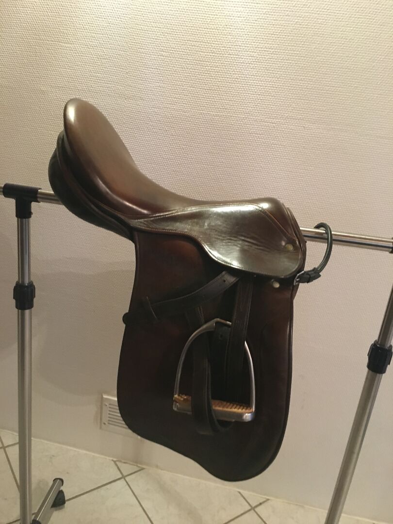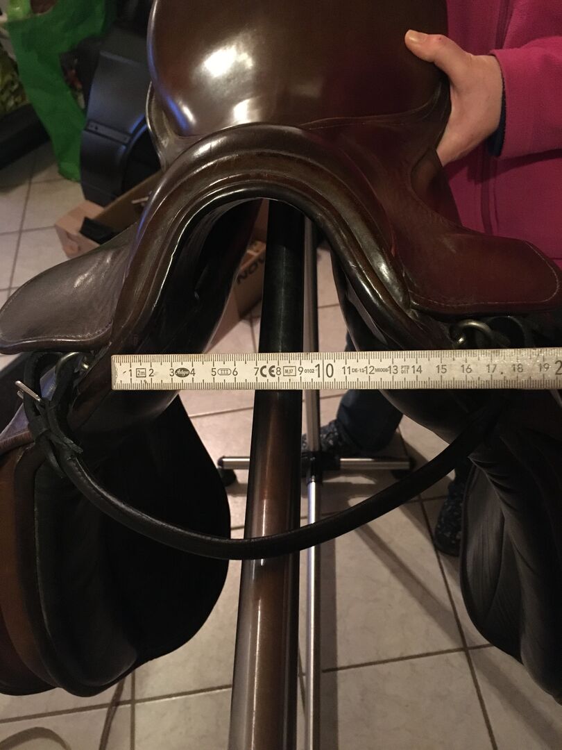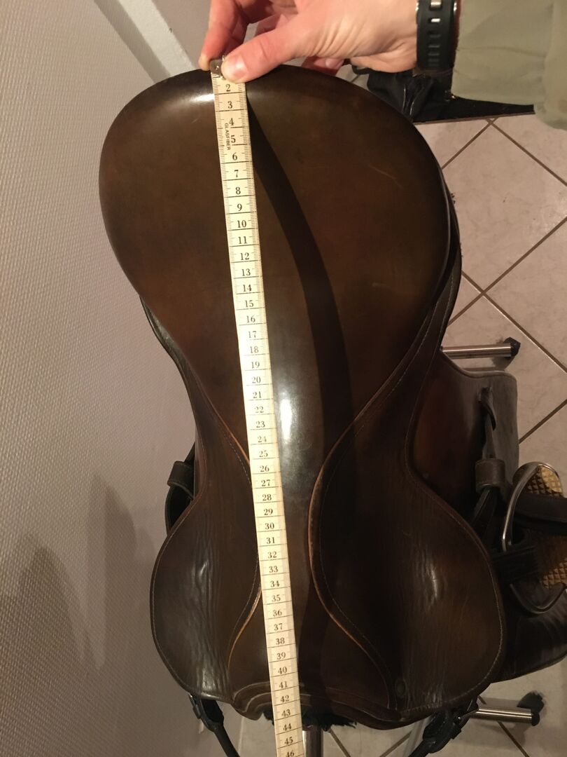 Sadeln satt på ett warmblood. Storlekarna kan tas från bilderna Om något mått eller någon information saknas är du välkommen att skicka ett meddelande.