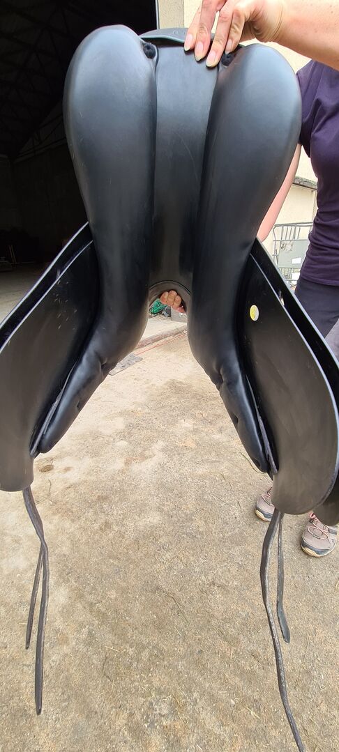 Produktbeskrivning från tillverkaren: Tack vare de stora pommlarna och de anatomiskt formade panelerna är Roma Dressage lämplig för både nybörjare och erfarna dressyrryttare. Den djupa, mjuka sitsen har en smal midja och garanterar exceptionellt bra kontakt med hästen när bäckenet är bakåtlutat. Eftersom vi är mycket måna om ett harmoniskt partnerskap mellan människa och djur är den senaste generationens paneler platta och tunna, så att ryttaren är mycket nära hästen. Sätet och kuddarna är täckta med kalvskinn, de bakre remmarna med V-bandet ger bättre stabilitet på hästens rygg. Med långa remmar.